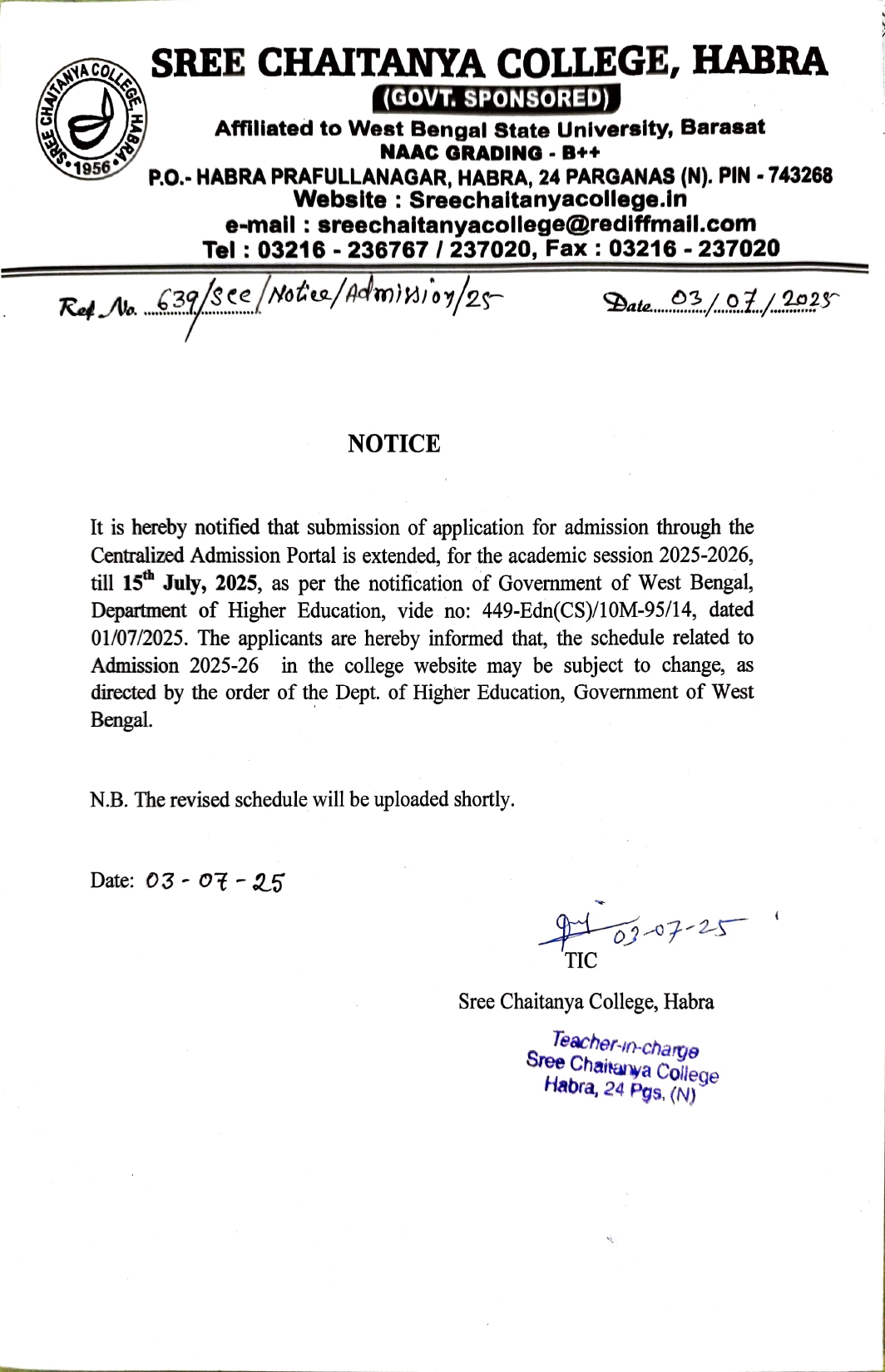 Extension of Admission Application Deadline for Academic Session 2025-2026