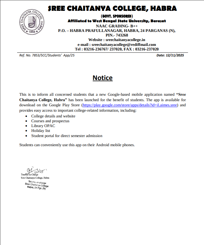 Launch of Sree Chaitanya College, Habra Official Mobile App