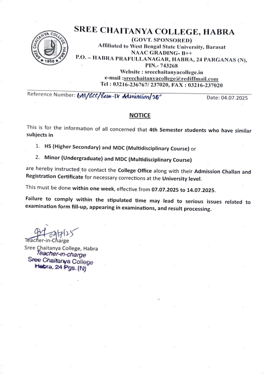 Mandatory University Correction for 4th Semester Students with Same Subjects in HS/Minor and MDC